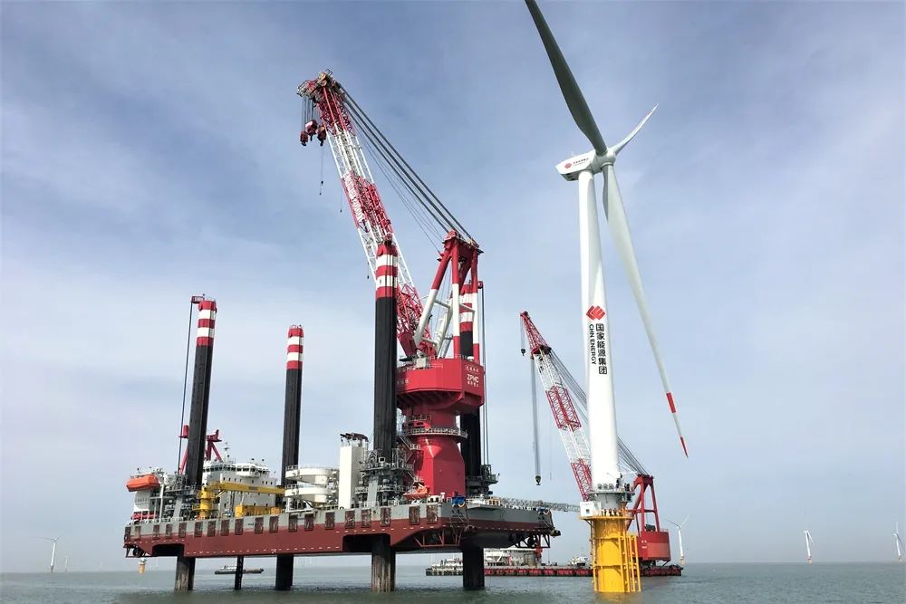 圖為龍源江蘇射陽海上風電場建設現(xiàn)場