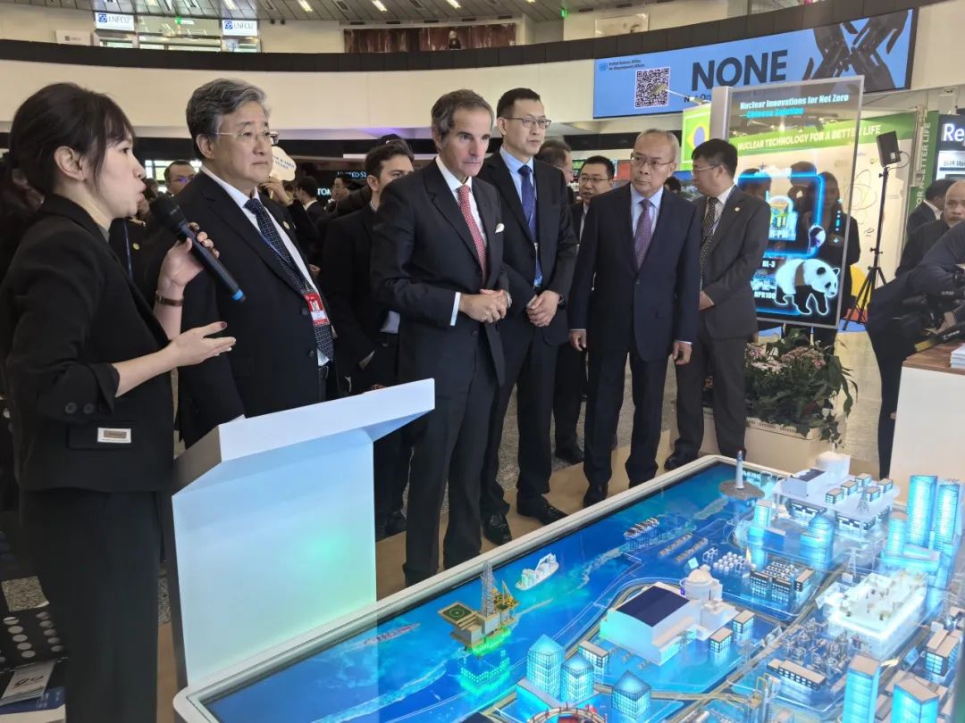 由中核集團(tuán)承辦的中國加入國際原子能機(jī)構(gòu)40周年“核創(chuàng)未來、核美家園”主題展臺(tái)吸引了全球同行的關(guān)注。在“核創(chuàng)未來、核美家園”主題展臺(tái)前,余劍鋒接待了國際原子能機(jī)構(gòu)總干事格羅西、國家核安全局局長董保同、中國國家原子能機(jī)構(gòu)副主任劉敬、中國常駐國際原子能機(jī)構(gòu)代表李松大使等重要嘉賓,體驗(yàn)中國傳統(tǒng)非遺拓印,共同在紙扇上拓印出“CHINA & IAEA 40 YEARS”“核美家園”。還有來自法國、沙特、約旦、土耳其、塞爾維亞、泰國、剛果等多個(gè)國家重要嘉賓參觀展臺(tái)。