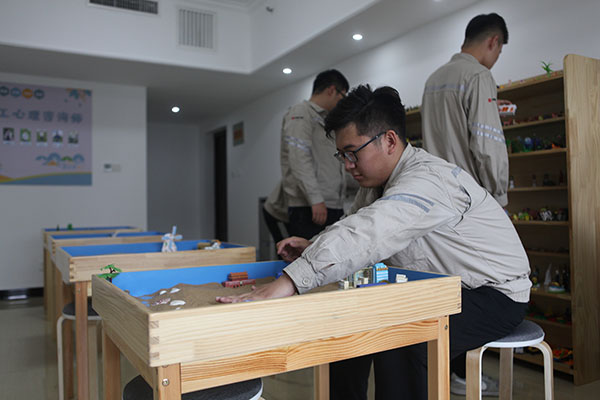 職工是企業(yè)之本,為促進(jìn)新職工之間的人際互動,普及心理健康知識水平,增強(qiáng)職工心理健康防護(hù)能力,激發(fā)職工工作的積極性、主動性,該公司工會組織開展了沙盤游戲活動。在工作人員介紹了沙盤游戲的相關(guān)知識和規(guī)則后,活動正式開始。通過非語言的溝通方式,新職工們構(gòu)造著自我的內(nèi)心世界,有的是回味校園時(shí)光的美好畫面;有的是構(gòu)想未來的自由悠閑生活畫面;還有的是回歸現(xiàn)實(shí),踏實(shí)學(xué)習(xí)兢兢業(yè)業(yè)工作的畫面.......。短短的兩個(gè)小時(shí),通過繪制沙盤,體會到了凝聚與溫暖的力量;通過分享傾訴,訴說出了內(nèi)心的真實(shí)感受;通過溝通討論,相互汲取智慧。沙盤游戲還教會了大家如何在平常生活中如何緩解自身心理壓力,培養(yǎng)良好的生活習(xí)慣,進(jìn)一步增強(qiáng)了團(tuán)隊(duì)的凝聚力和向心力。