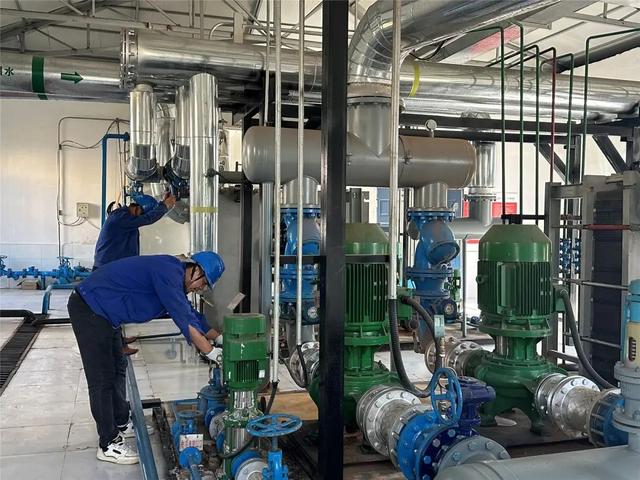 在城郊街道山城富雅苑小區(qū),內(nèi)蒙古能源發(fā)電興安熱電有限公司的工作人員正在調(diào)試供暖設(shè)備、查驗管道閥門,并對小區(qū)內(nèi)熱力管網(wǎng)進行注水試壓、開栓供熱,確保供熱設(shè)備安全運行。