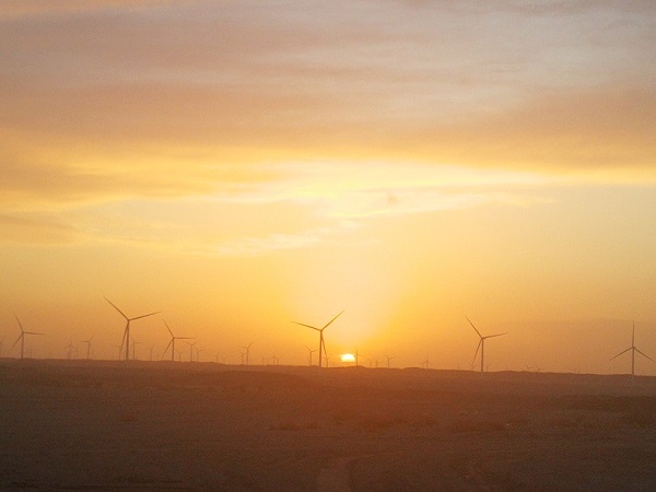 工作了一天,我們會(huì)在晚上看落日晚霞,戈壁灘上的落日很大,輪廓分明而清晰,隨著時(shí)間的推移,太陽(yáng)慢慢的落進(jìn)了地平線里,此時(shí)的天空呈現(xiàn)出紅黃綠藍(lán)的漸變顏色,柔和而美麗,風(fēng)機(jī)的輪廓也映襯著更加的鮮明可見(jiàn),放眼望去,只看見(jiàn)千百臺(tái)風(fēng)機(jī)在轉(zhuǎn)動(dòng),使人心曠神怡。