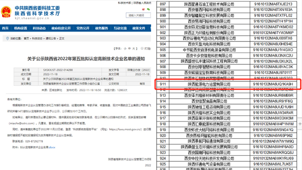 中國(guó)電力網(wǎng)訊 (通訊員:魏佳貴) 12月2日,陜投電力運(yùn)營(yíng)公司順利通過高新技術(shù)企業(yè)認(rèn)定。