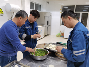 節(jié)日期間,現(xiàn)場(chǎng)職工們一起包餃子、貼春聯(lián),共同烹飪?cè)趰徛毠さ?ldquo;團(tuán)圓年夜飯”,為現(xiàn)場(chǎng)帶來十足“年味兒”。
