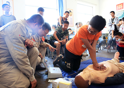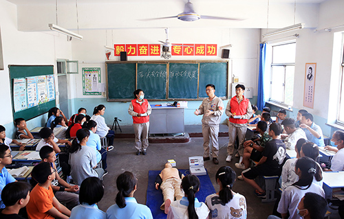 中國(guó)電力網(wǎng)訊 “青春心向黨、奮進(jìn)新征程”。2021年6月是全國(guó)第20個(gè)安全生產(chǎn)宣教月,按照國(guó)務(wù)院安委辦關(guān)于安全咨詢“進(jìn)企業(yè)、進(jìn)農(nóng)村、進(jìn)社區(qū)、進(jìn)學(xué)校、進(jìn)家庭”五進(jìn)活動(dòng)要求,為了更好地把安全理念傳遞給企業(yè)周邊學(xué)校學(xué)生,6月18日下午,大唐臨汾熱電公司組織青年志愿者走進(jìn)汾河學(xué)校“大唐班”開展主題團(tuán)日活動(dòng),看望七年級(jí)、八年級(jí)“大唐班”學(xué)子,進(jìn)行安全宣傳咨詢和心肺復(fù)蘇急救指導(dǎo),提升孩子們的自我防護(hù)意識(shí)及自救能力。