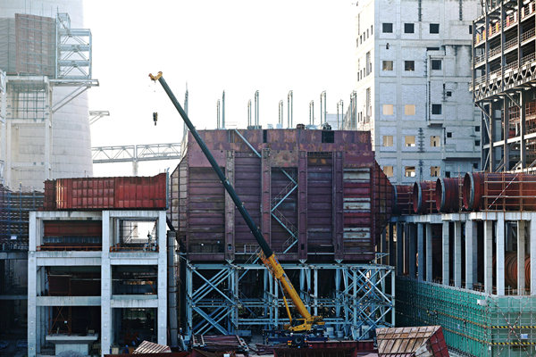 該公司電廠工程每臺機組共設(shè)計2臺三室五電場型高效靜電除塵器,除塵效率不低于99.85%,單臺靜電除塵器重約4689噸。自2月1日電廠工程正式復(fù)工以來,該公司積極組織施工資源、優(yōu)化施工方案,3月10日,1B靜電除塵器在4臺靜電除塵器中率先開工建設(shè)。該公司聯(lián)同各參建單位,上下一心、戮力同心,克服施工場地狹小、大型起重機械無法使用以及天氣影響等困難,經(jīng)過77天奮戰(zhàn),1B靜電除塵器主體安裝工程順利完工。