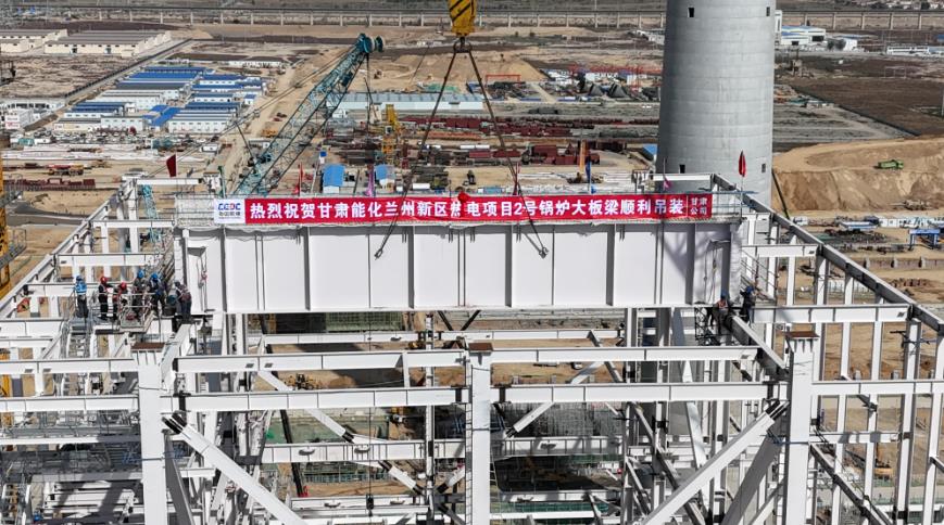 10月15日,中國能建西北院總承包的甘肅能化蘭州新區(qū)熱電項(xiàng)目2號(hào)鍋爐大板梁吊裝就位。