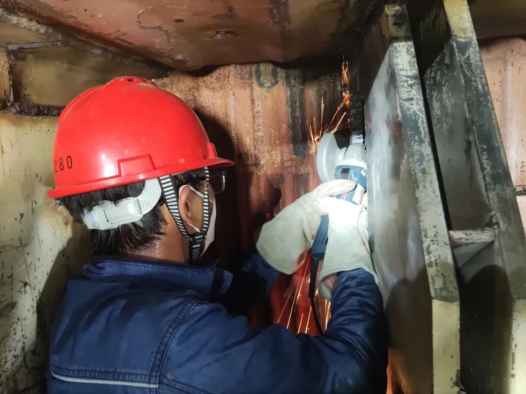 迎峰度夏期間,陜投集團(tuán)趙石畔煤電檢修人員采取各種措施保證設(shè)備健康穩(wěn)定運(yùn)行,加強(qiáng)對主、輔機(jī)設(shè)備的運(yùn)行調(diào)整、檢修維護(hù),對重點(diǎn)防汛地段、部位進(jìn)行專項(xiàng)檢查。特別是出現(xiàn)緊急情況下的搶修工作,往往是輪番上陣,人歇工作不停。圖中,點(diǎn)檢郭生磊在鍋爐房消除設(shè)備膨脹受限缺陷,他手持角磨機(jī)一干就是半個(gè)多小時(shí),面對噪音、高溫、火星飛濺等因素他堅(jiān)持作業(yè)。當(dāng)缺陷消除時(shí),他的衣服早已濕透,但臉上卻露出了笑容。(李磊)