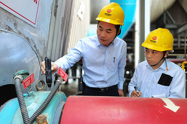 圖為運(yùn)行人員測量鍋爐高壓輔機(jī)振動(dòng)情況