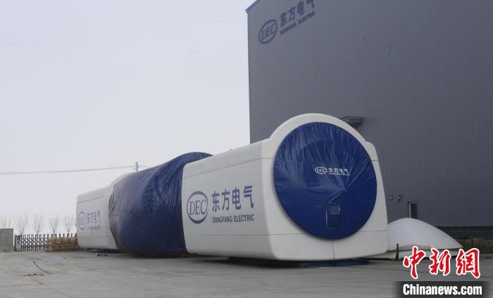 3月8日,在木壘縣新疆東方風(fēng)電新能源有限公司車(chē)間外,一臺(tái)正在準(zhǔn)備運(yùn)走的風(fēng)力發(fā)電機(jī)組?!√账┛啤z