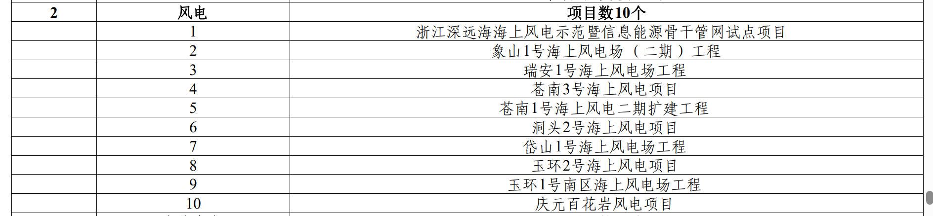 《項(xiàng)目表》顯示,2024年浙江省重大建設(shè)項(xiàng)目包含10個風(fēng)電項(xiàng)目,其中海上風(fēng)電項(xiàng)目8個,即象山1號海上風(fēng)電場(二期)工程、瑞安1號海上風(fēng)電場工程、蒼南3號海上風(fēng)電項(xiàng)目、蒼南1號海上風(fēng)電二期擴(kuò)建工程、洞頭2號海上風(fēng)電項(xiàng)目、岱山1號海上風(fēng)電場工程、玉環(huán)2號海上風(fēng)電項(xiàng)目、玉環(huán)1號南區(qū)海上風(fēng)電場工程,海上風(fēng)電項(xiàng)目總裝機(jī)容量達(dá)2893MW。