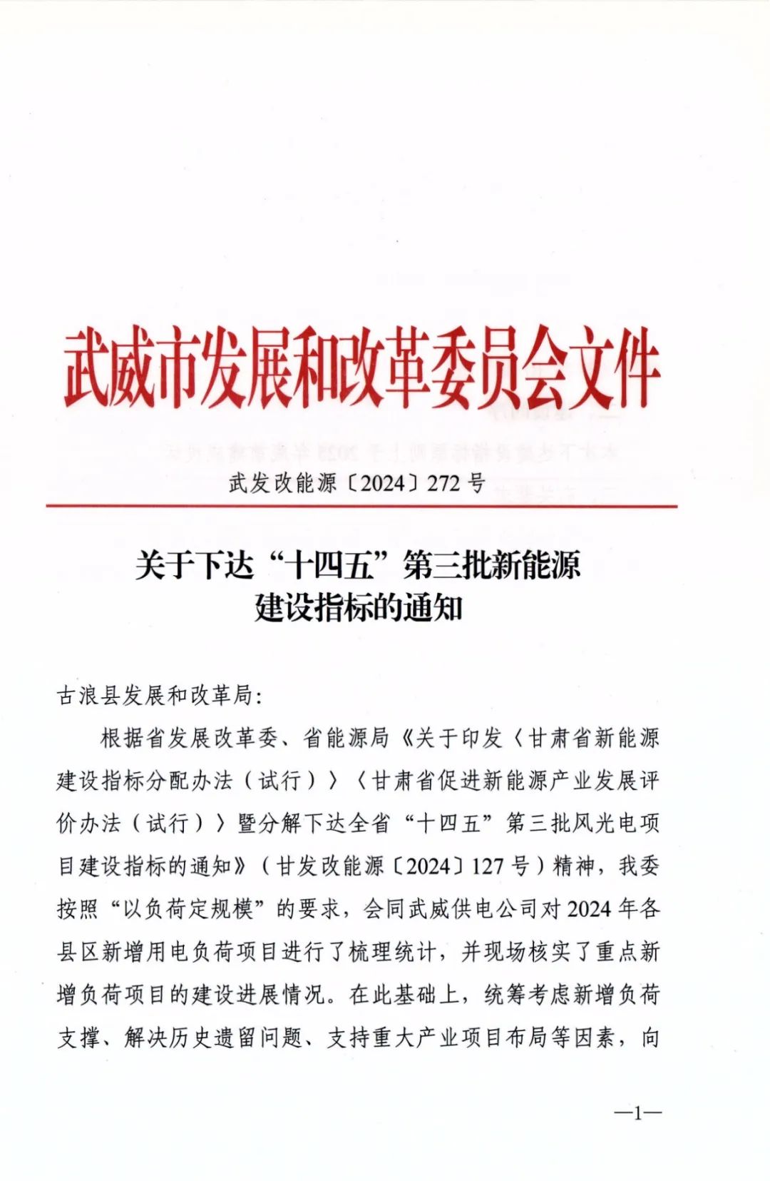 7月30日,甘肅省武威市發(fā)改委發(fā)布《關(guān)于下達(dá)“十四五”第三批新能源建設(shè)指標(biāo)的通知》。