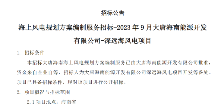 公告顯示,大唐海南能源開發(fā)有限公司按照中國大唐集團在瓊“4435”發(fā)展戰(zhàn)略、海南公司“3813”發(fā)展綱要,已完成成為海南省最大的清潔能源供應商。下一步,按照海南公司“一基兩翼三極+”發(fā)展新格局,將大力發(fā)展海上風電,根據(jù)海南公司海上風電發(fā)展需要,編制大唐海南海上風電基地規(guī)劃報告、海南省及東方市海上風電上下游產(chǎn)業(yè)鏈發(fā)展規(guī)劃報告。