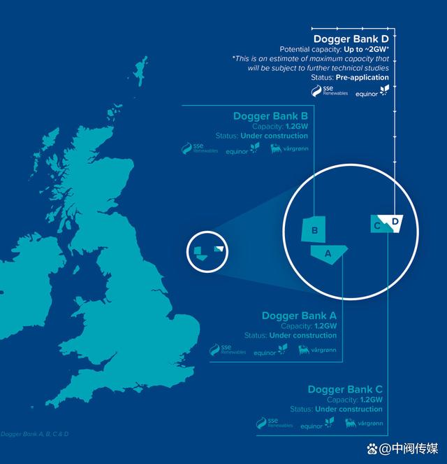 Dogger Bank,全球最大的在建海上風(fēng)電場,正在進行令人矚目的第四期場址建設(shè)擴張,名為Dogger Bank D。此項擴建計劃意味著將安裝更多的風(fēng)機和海上平臺,總?cè)萘繉⑦_到5.6GW,這將進一步推動全球可再生能源的發(fā)展,同時也為歐洲各國提供了新的電力供應(yīng)解決方案。
