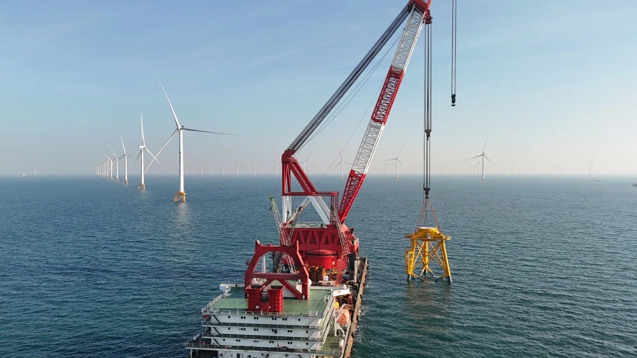 項目標段二自2024年1月開展風(fēng)機基礎(chǔ)鋼結(jié)構(gòu)制作,至2024年12月全容量并網(wǎng),實現(xiàn)了“當年開工、當年全容量并網(wǎng)”目標,為國內(nèi)海上風(fēng)電嵌巖場址建設(shè)提供了扎實的“能建方案”。