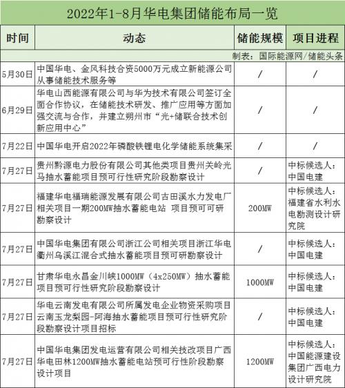 2022年,華電集團成立新能源公司從事儲能技術(shù)服務(wù)等業(yè)務(wù),并開啟磷酸鐵鋰電化學(xué)儲能系統(tǒng)集采。儲能項目招標6個,均為抽水蓄能項目。