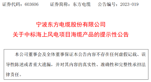 東方電纜(603606)于5月23日發(fā)布公告稱(chēng),近日,寧波東方電纜股份有限公司(以下簡(jiǎn)稱(chēng)“公司”)陸續(xù)收到《中標(biāo)通知書(shū)》,確認(rèn)公司為相關(guān)項(xiàng)目中標(biāo)人,現(xiàn)將具體中標(biāo)情況公告如下: