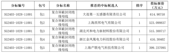 電纜附件一共16包,長纜科技中標(biāo)包1,報價為1186.759109萬元,中標(biāo)金額居16家中標(biāo)廠商中第一位置。