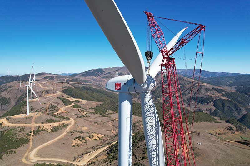 20日,在最后一臺風(fēng)機(jī)--8號風(fēng)機(jī)吊裝現(xiàn)場,中國安能建設(shè)者們正在準(zhǔn)備發(fā)電機(jī)吊裝作業(yè)。“大家注意,起吊!”隨著吊車的啟動(dòng),葉輪慢慢向約95米的高空爬升。“今天基本沒有風(fēng),天氣晴朗,葉輪吊裝順利。”正在現(xiàn)場指揮的中國安能第二工程局普格采乃風(fēng)電場項(xiàng)目經(jīng)理魯大偉介紹道,普格采乃風(fēng)電場項(xiàng)目的31臺風(fēng)機(jī)終于完成了安裝,下一步將進(jìn)入調(diào)試階段。