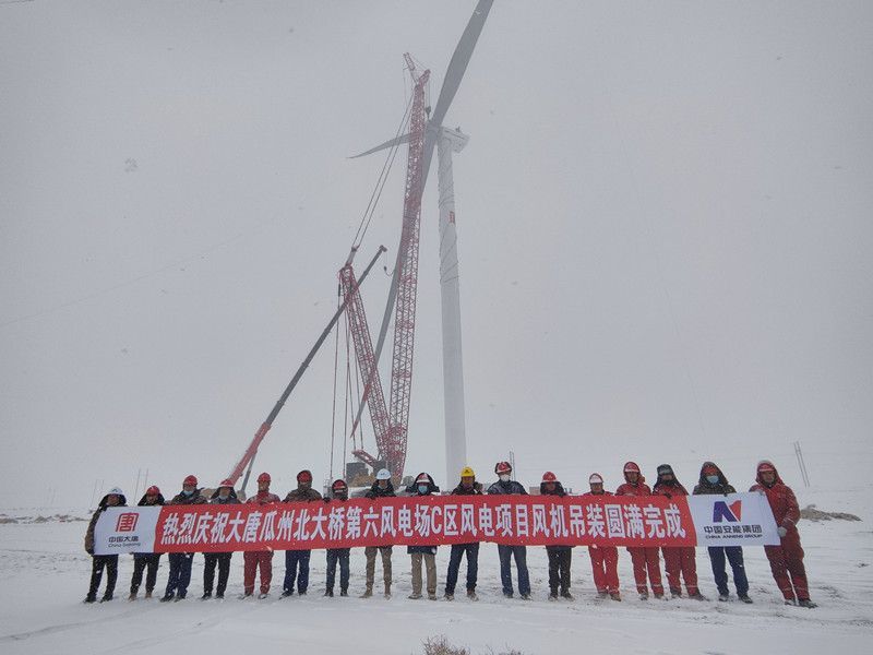 11月27日,隨著最后一臺風(fēng)機(jī)葉輪與輪轂在百米高空完成精準(zhǔn)對接,由中國安能二局承建的大唐瓜州北大橋第六風(fēng)電場C區(qū)100MW風(fēng)電項(xiàng)目16臺風(fēng)機(jī)吊裝工作圓滿完成。