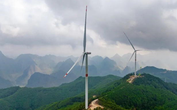 都陽風電場位于大化瑤族自治縣都陽鎮(zhèn)、江南鄉(xiāng)、巖灘庫區(qū)周邊一代山脊區(qū)域,一期工程容量為5.4萬千瓦,安裝9臺6兆瓦風力發(fā)電機,葉片長達98米,塔筒高達115米,是中國華南區(qū)域單機容量最大的陸上風電。