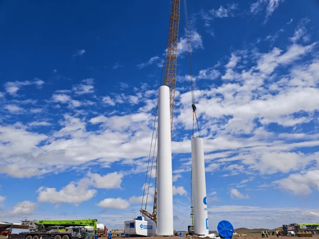 7月6日,由上海電建青海公司承建的新疆昌吉綠能新能源有限公司綠能木壘四十個(gè)井子400兆瓦風(fēng)力發(fā)電及配套220千伏匯集站項(xiàng)目第四標(biāo)段首臺(tái)風(fēng)機(jī)吊裝圓滿完成,標(biāo)志著工程正式進(jìn)入吊裝作業(yè)高峰期。