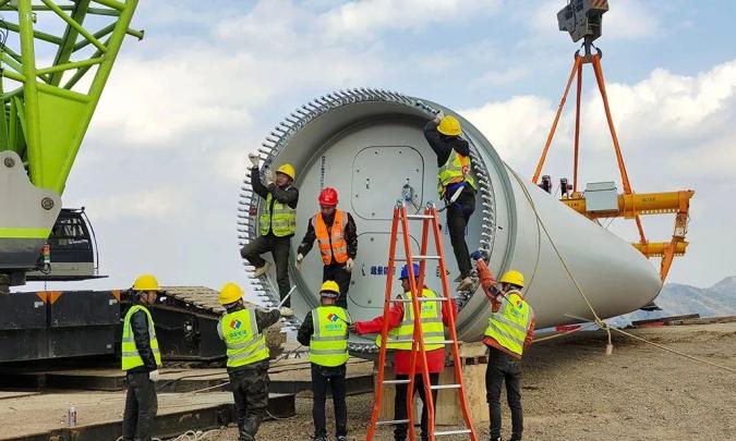 時下,興仁市屯腳坪寨風(fēng)電場項目建設(shè)持續(xù)穩(wěn)步推進,工人們正緊盯任務(wù)節(jié)點,有序進行風(fēng)力發(fā)電機組吊裝工作,該項目預(yù)計于2025年6月實現(xiàn)全容量并網(wǎng)發(fā)電。