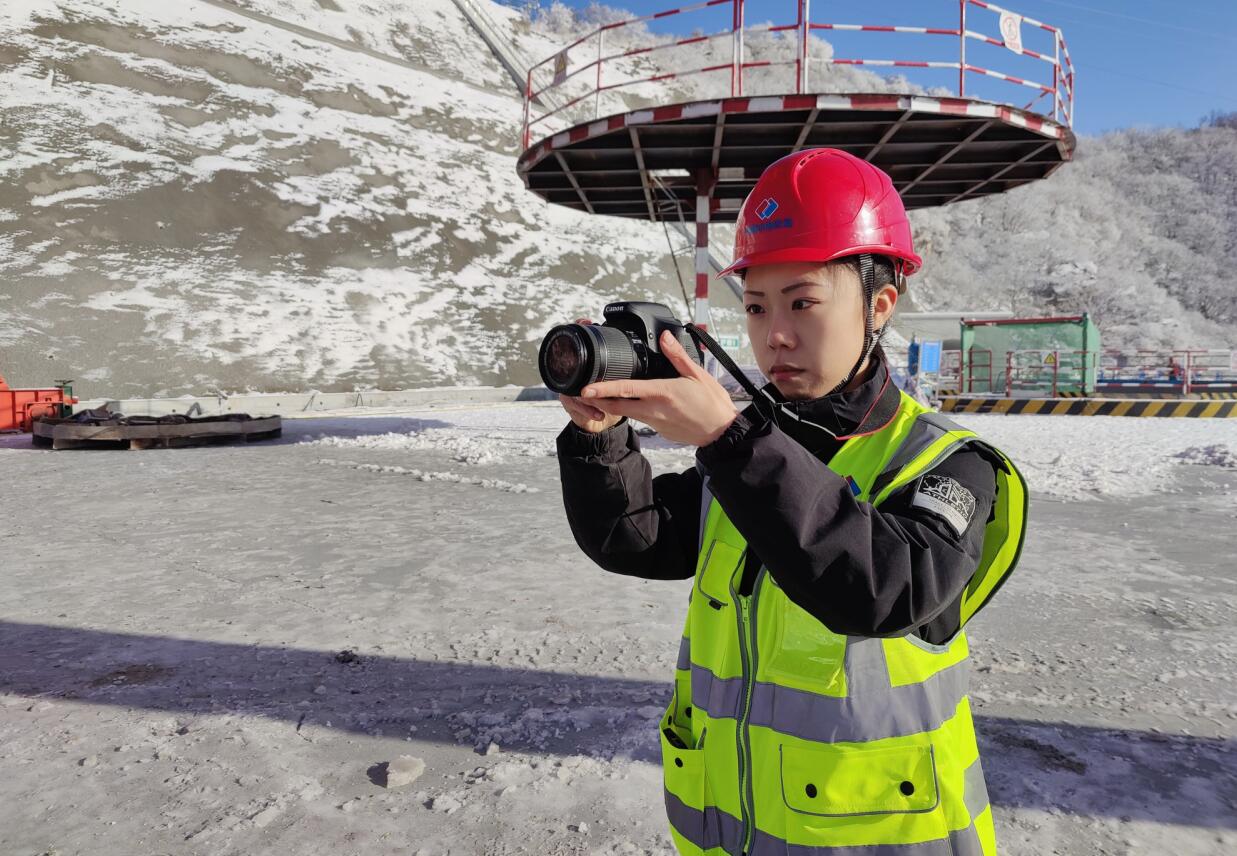2022年,因工作調(diào)動,將沂蒙年底尾工事宜處理妥當后,她在元旦當天,乘車前往河北易縣抽蓄電站項目部。顛簸整日,到達項目營地已是深夜,值守夜班的同事們熱情地問候完新來的她,便忙驅(qū)車趕赴施工現(xiàn)場。營地大門口火紅的燈籠映著新年雪夜里那些奔波的身影,她渾身積蓄的動力也就此引燃了。