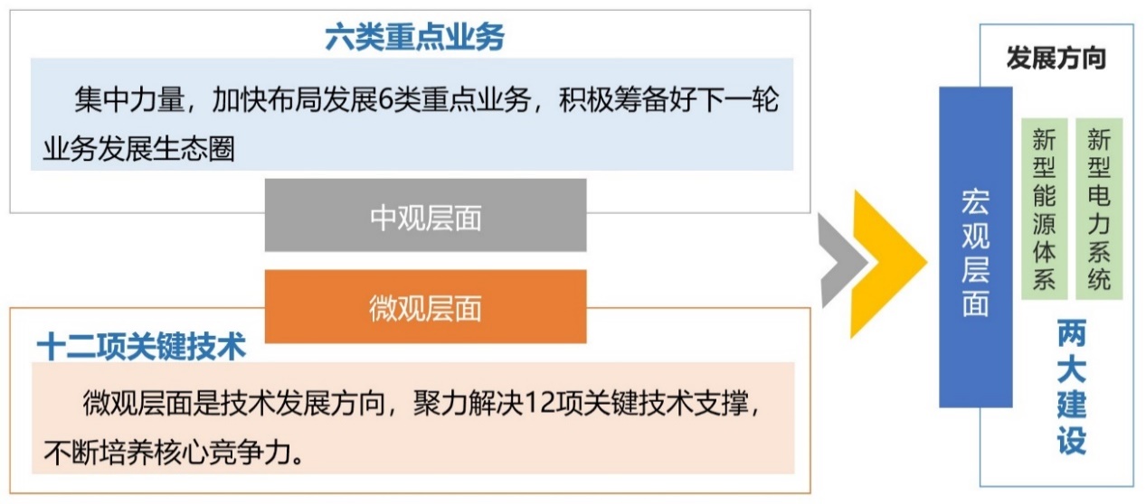 科學(xué)規(guī)劃新質(zhì)生產(chǎn)力發(fā)展方向,制定發(fā)展新質(zhì)生產(chǎn)力的陜西院方案,是保障新質(zhì)生產(chǎn)力發(fā)展的重要前提。陜西院基于自身資源稟賦及發(fā)展優(yōu)勢,從三個層面系統(tǒng)性提出新質(zhì)生產(chǎn)力業(yè)務(wù)發(fā)展規(guī)劃,制定了發(fā)展新質(zhì)生產(chǎn)力的陜西院方案:宏觀層面是方向指引,要堅(jiān)持立足構(gòu)建新型能源體系與構(gòu)建新型電力系統(tǒng),主動履行央企責(zé)任擔(dān)當(dāng);中觀層面是業(yè)務(wù)發(fā)展方向,要集中力量,加快布局發(fā)展6類重點(diǎn)業(yè)務(wù),積極籌備好下一輪業(yè)務(wù)發(fā)展生態(tài)圈;微觀層面是技術(shù)發(fā)展方向,要聚力解決12項(xiàng)關(guān)鍵技術(shù)支撐,不斷培養(yǎng)核心競爭力。