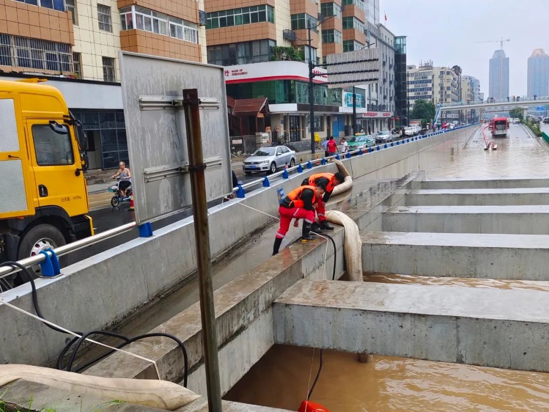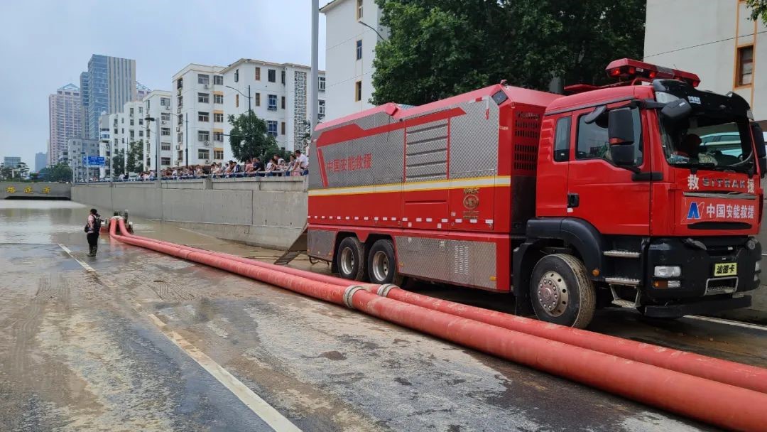 鄭州方向,安能三局派出25人,4臺龍吸水,2臺一體化泵車,在京廣北路隧道由北往南展開抽排水。針對鄭州站西廣場積水嚴重情況,中國安能三局采取“人歇機不停、兩班連續(xù)戰(zhàn)”的戰(zhàn)法,截止22日12時00分,完成抽排水26萬方,水位下降約3.5米,已經大幅度下降,西北側隧道道路面露出約60米。因下半夜抽排現場連續(xù)強降雨,抽排水仍在緊張工作中。在抽排水現場,全體抽排水指戰(zhàn)員白天冒高溫、晚上頂濕冷,沒有一人叫苦叫累,他們團結協(xié)作,有序有力奮戰(zhàn)在抽排水一線。