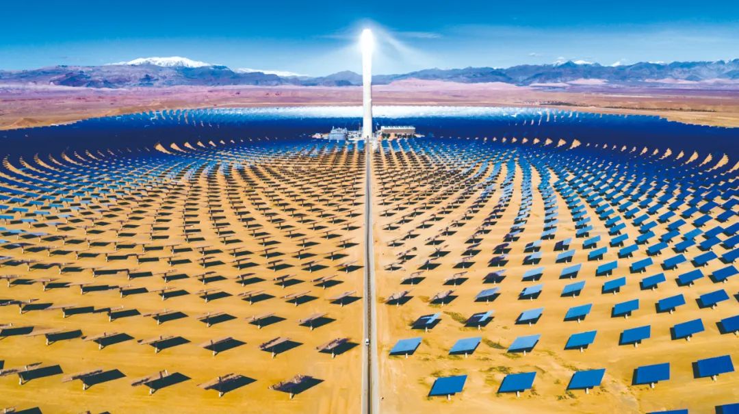 中國電建建設完成的全球裝機容量最大的塔式太陽能聚熱電站——摩洛哥努奧Ⅲ期150兆瓦光熱電站。