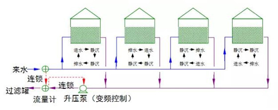 一次沉降罐、二次沉降罐、升壓緩沖罐、一次過濾罐、二次過濾罐、凈化水罐。主工藝流程介紹:該工藝中沉降段共有沉降罐4座,既可以實(shí)現(xiàn)兩級(jí)連續(xù)流沉降處理,又可以實(shí)現(xiàn)一級(jí)序批式沉降處理,每座沉降罐都配有曝氣系統(tǒng)。在原水含劑濃度低時(shí),運(yùn)行兩級(jí)連續(xù)流沉降;當(dāng)原水含劑濃度升高,兩級(jí)連續(xù)流沉降處理不能保證出水合格時(shí),運(yùn)行一級(jí)序批式沉降。
