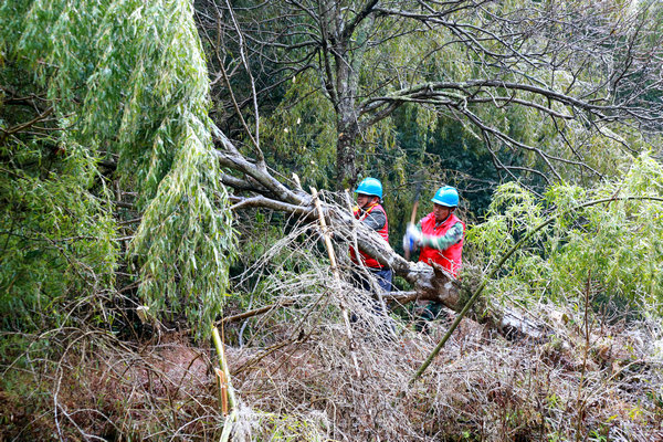 中國(guó)電力網(wǎng)訊 “123…加油!123…加油!大家注意安全,控制好繩索方向,千萬(wàn)不要讓樹壓在線上……”12月15日,在10千伏坪溪Ⅱ線坪嚴(yán)支線湖竹坪次支,國(guó)網(wǎng)樂(lè)安縣供電公司共產(chǎn)黨員服務(wù)隊(duì)隊(duì)員正在清理覆冰線路通道外的樹木,保障低溫冰凍天氣電網(wǎng)安全穩(wěn)定運(yùn)行。