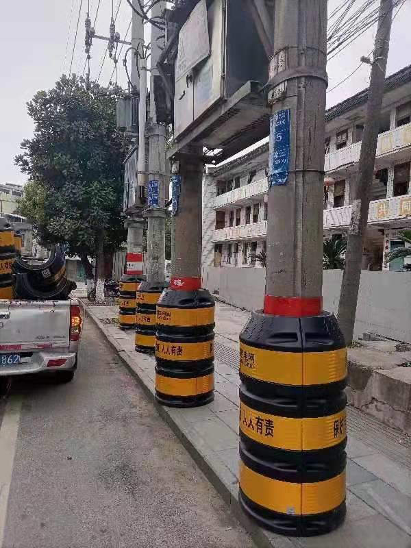 此次安裝的電桿防撞桶顏色為黃黑相間,格外醒目,上面印有國(guó)家電網(wǎng)標(biāo)志,中間印有警示標(biāo)語(yǔ)。防撞桶為塑料材質(zhì),外貼有反光條,具有緩沖撞擊力、夜間反光警示等功能,能有效提醒行人和車輛注意安全,極大地降低了電桿因外力因素而導(dǎo)致的破壞,確保電網(wǎng)安全可靠供電的同時(shí),保障客戶用電安全。