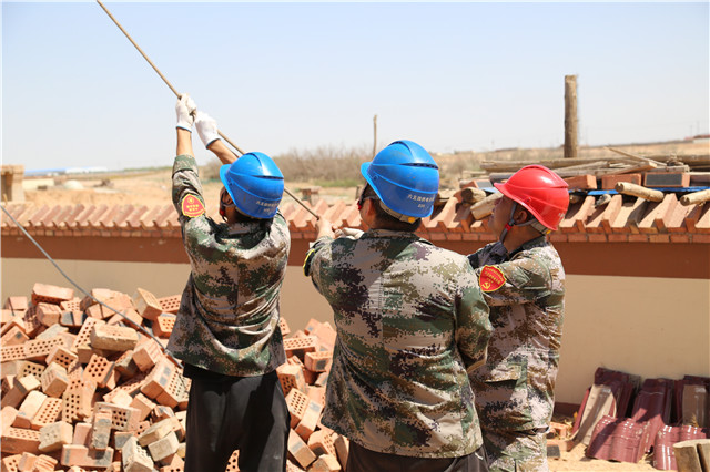 施工當天烏海地區(qū)高溫來襲,施工難度陡增,六五四供電分局黨員突擊隊成員在三十五攝氏度的高溫下,頭頂烈日、腳踏電桿。按照分工干脆利落的進行立桿、安裝橫擔、緊線等工作。經(jīng)過3個小時的作業(yè),終于順利地為此貧困戶送上電。貧困戶張占飛的母親非常激動。“原先以為只是簡單修一下,沒想到還需要這么多步驟,他們做得這么細致、這么認真,真的是非常感謝他們。”