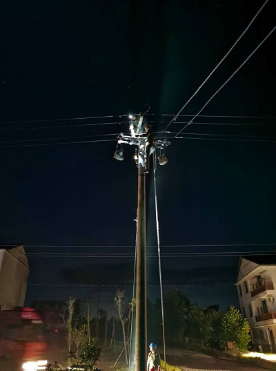 事故發(fā)生后,龔坊供電所所長楊程立即組織人員第一時間趕赴現(xiàn)場,經(jīng)現(xiàn)場查勘后制定搶修方案,在確保人身安全的前提下,連夜開展搶修工作。在搶修現(xiàn)場,做好安全措施后,樂安縣供電公司龔坊供電所10余名員工協(xié)同合作,對損毀的斷桿、導(dǎo)線、橫擔(dān)進(jìn)行清理,重新立桿、安裝新的拉線、T接導(dǎo)線……搶修工作有條不紊的進(jìn)行。
