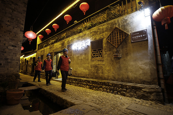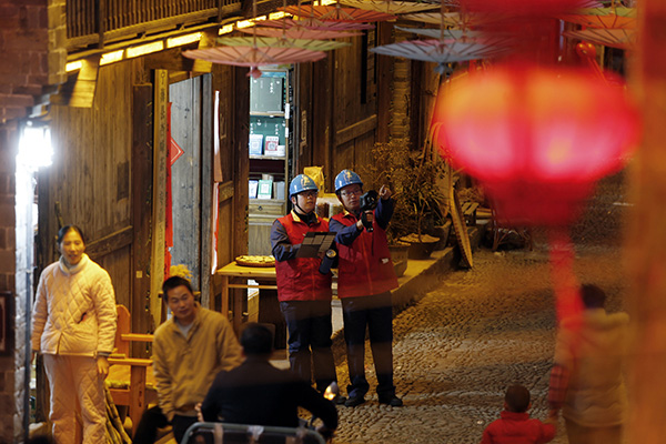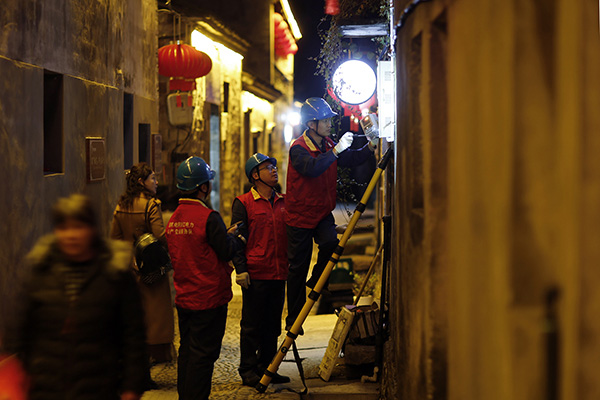 夜幕降臨,前童古鎮(zhèn)條條古巷的燈光開(kāi)始亮起來(lái),但古巷旁水渠里仍倒影著隊(duì)員們忙碌的身影。有了國(guó)網(wǎng)寧海縣供電公司工作人員不辭辛勞的保供電,留浙過(guò)年的新寧海人在前童古鎮(zhèn)這個(gè)元宵節(jié)將過(guò)得格外溫暖。
