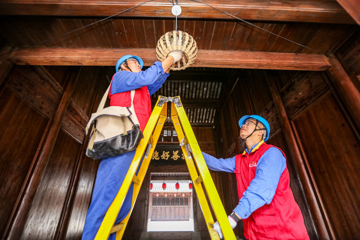 隨著秋冬季干燥氣候的到來,考慮到走馬樓的特殊木質(zhì)結(jié)構(gòu),國家電網(wǎng)浙江電力(鄞州)紅船共產(chǎn)黨員服務(wù)隊(duì)特意來到走馬樓,為該處做了一次綜合性的“體檢”工作。服務(wù)隊(duì)員重點(diǎn)對走馬樓的墻頭線、計(jì)量裝置進(jìn)線以及計(jì)量裝置表后線進(jìn)行了一一檢查,排查線路短路、絕緣老化和設(shè)備故障等運(yùn)行隱患,針對照明設(shè)備損壞的情況,服務(wù)隊(duì)員利用自身技術(shù)技能,現(xiàn)場更換受損設(shè)備,共為走馬樓更換燈泡20盞,修復(fù)燈座15個(gè)。此外,供電人員還來到走馬樓另一側(cè)的居住區(qū),為其中居住的居民更換老舊表箱,消除居民日常生活中的用電隱患。為了保障走馬樓的日常用電安全,服務(wù)隊(duì)員還向管理人員進(jìn)行了安全用電知識的科普宣傳,叮囑管理人員注意木質(zhì)結(jié)構(gòu)房屋的用電安全,謹(jǐn)慎使用大功率電器,以免發(fā)生火災(zāi)。
