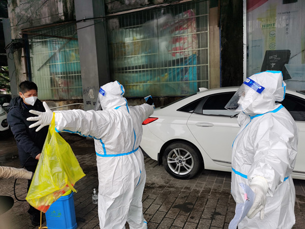 “您好,您需要的菜品我們已經(jīng)買(mǎi)回來(lái)了,放在您的家門(mén)口,您方便了出來(lái)取一下。”這是青年黨員覃婕這些天來(lái)重復(fù)最多的話,在中興小區(qū)還有很多和覃婕一樣的“青春面孔”,他們主動(dòng)充當(dāng)小區(qū)居民的跑腿員,為大家采買(mǎi)送遞,正是因?yàn)橛辛怂麄兊呐芮芭芎螅用駛兊幕旧钗镔Y才得以正常供應(yīng),才能夠更安心的“宅”在家里,說(shuō)起他們,社區(qū)和居民都是一片褒獎(jiǎng)之詞。