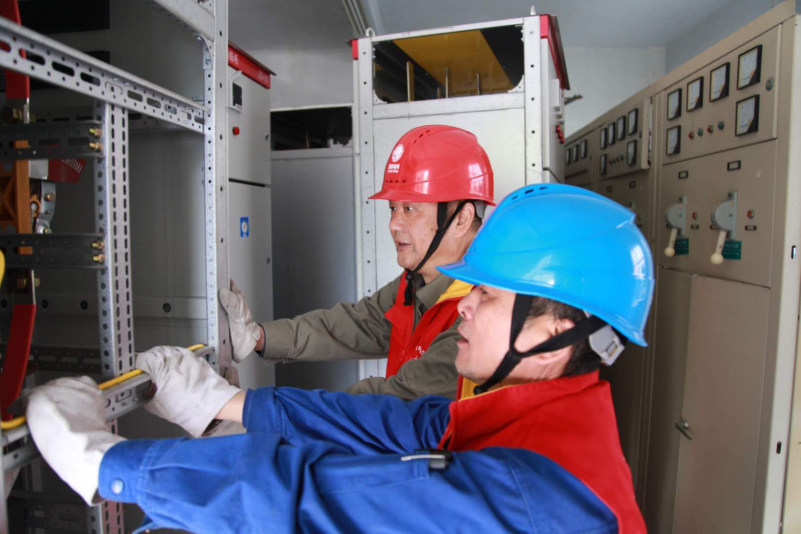 10月24日一大早,國家電網(wǎng)浙江電力(鄞州)紅船共產(chǎn)黨員服務(wù)隊(duì)隊(duì)員們早已來到東裕小區(qū)一期的施工現(xiàn)場,為東裕一期2號配電室3號變、4號變進(jìn)行母線更換、拆搭接地工作。