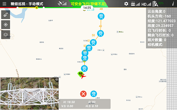 以往需要巡檢人員手動操作無人機進行巡檢工作,現(xiàn)在通過無人機自主巡檢系統(tǒng),可以實現(xiàn)管轄線路內(nèi)任意段的無人機自主飛行巡檢,巡檢人員一次性發(fā)出指令,無人機按照指令自主出發(fā)、自主巡檢、自主返回降落。在自主飛行過程中,畫面圖像會實時的回傳到地面操作平臺。巡檢人員進行軟件操作即可實現(xiàn)桿塔精細化巡視、樹障巡視、通道巡視、紅外測溫等其他巡視任務(wù)。以往需要人工視角或無人機視角來獲取線路通道情況,依靠的是人工主觀判斷,存在一定的誤判率?,F(xiàn)在通過管控平臺進行三維點云數(shù)據(jù)處理,可以構(gòu)成一個三維的模擬現(xiàn)場環(huán)境的電力線,精確的給出線樹距離、面積、體積等,并生成檢測報告,大大減少了不必要的工作。以往需要巡檢人員回到辦公地點進行巡視結(jié)果匯報,現(xiàn)在在現(xiàn)場通過巡檢專業(yè)移動終端上報至平臺系統(tǒng)即可完成工作匯報,管控人員通過平臺報表和預(yù)警合理的安排工作人員,極大的提升了工作效率。