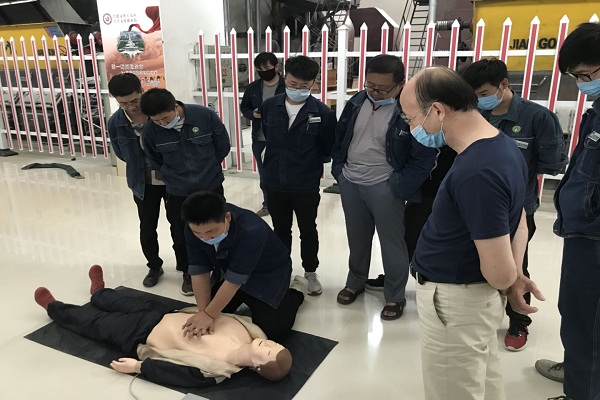 隨后,大家利用模擬人依次進(jìn)行了心肺復(fù)蘇搶救實(shí)訓(xùn)。實(shí)踐過程中,實(shí)訓(xùn)儀器不時的發(fā)出錯誤提示音,有的胸外心臟按壓用力過猛,有的吹氣手法錯誤,氣量過小,還有的動作頻率過慢……。經(jīng)過李燾的一一指正,通過反復(fù)練習(xí),所有人員都成功完成了心肺復(fù)蘇搶救演練。