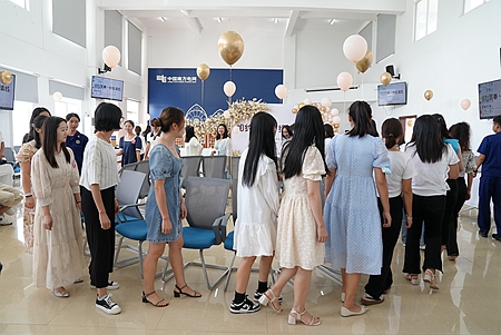 為了更好地服務來參加的單身青年交友,現(xiàn)場最后還設置當愛在靠近環(huán)節(jié),除“愛之初體驗”兩兩相悅的男女嘉賓外,參加活動女嘉賓上臺,男嘉賓將自己的號碼寫在貼紙上,女嘉賓閉眼,男嘉賓將貼紙貼在女嘉賓手臂上,結束后女嘉賓查看貼紙,如果有自己意中人的號碼在貼紙上則點頭示意,女嘉賓走到男嘉賓身邊牽手成功,讓期待愛情的人能不間斷地持續(xù)尋找自己的有緣人,期待譜寫出美麗浪漫的愛情篇章。