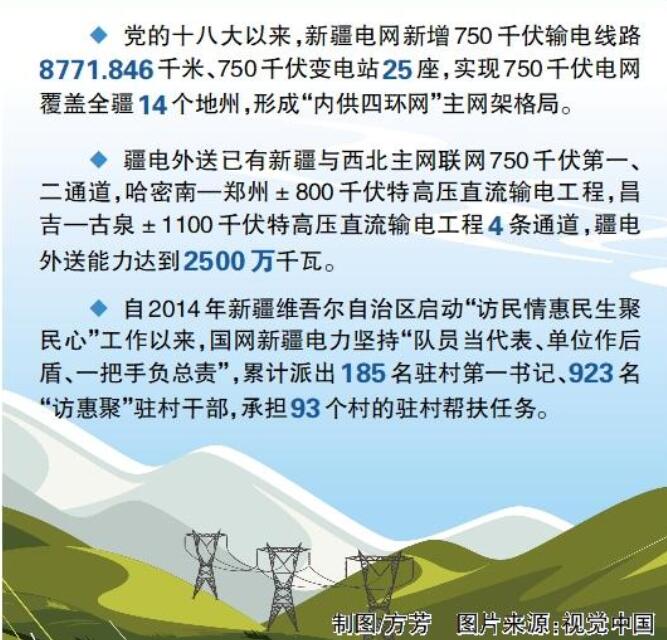 伴隨著一條條銀線跨越千年的絲綢古道,新疆正憑借豐富的資源、重要的地理位置迎來大發(fā)展。國網(wǎng)新疆電力充分發(fā)揮自治區(qū)資源優(yōu)勢,將源源不斷的電力轉(zhuǎn)化為促進新疆經(jīng)濟社會發(fā)展的強大動力。今天的新疆,發(fā)展脈搏強勁跳動,群眾生活幸福美好,天山南北處處呈現(xiàn)喜人變化。(余艷春 范增琴)