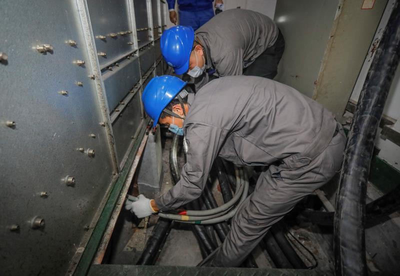 “門診明天6時開始工作,我們必須在凌晨4時前通電,保證門診部明天正常運轉!” 工程負責人張軍現(xiàn)場號令。30日晚,20余名電力員工在李惠利醫(yī)院10千伏環(huán)網(wǎng)站周圍拉起安全施工防護欄和警界線,一場10千伏新電力用電設備投運施工在星夜展開。老配電房電纜溝窄小,2名員工只能側著身把舊導線用力拉出來,再把新電纜放進去。新配電箱安裝時,供電員工只能跪著安裝碗口粗的銅電纜,施工難度非常大。而供電員工心理明白,這是一場與時間賽跑、為生命加速的工程。