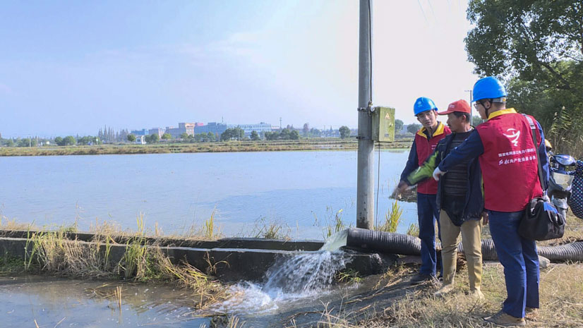 種植藺草,首先要對農(nóng)田進行灌水耕耙,500余畝藺草分布在各個田間,需要用電動潛水泵逐一排灌供水。當(dāng)日上午,司徒小剛發(fā)現(xiàn)其中一臺潛水泵突然不會出水,無法進行排灌,嚴(yán)重影響了冬種進度。著急的他正準(zhǔn)備打電話咨詢,恰好碰到前來例行巡視的紅船共產(chǎn)黨員服務(wù)隊,急忙上前尋求幫助。聽到該情況,兩位隊員不敢耽誤,立即來到農(nóng)用線路的電桿下,打開引落箱蓋進行檢查。當(dāng)隊員勵劍用萬用表對電源進行測量時,發(fā)現(xiàn)2個出線樁頭有松弛,導(dǎo)致了出線“跳火”,這才引起了故障。勵劍立即扭緊了二出線羅栓,推上開關(guān),瞬間水就像瀑布一般竄出電動潛水泵,嘩啦啦地流向水渠進入田間。