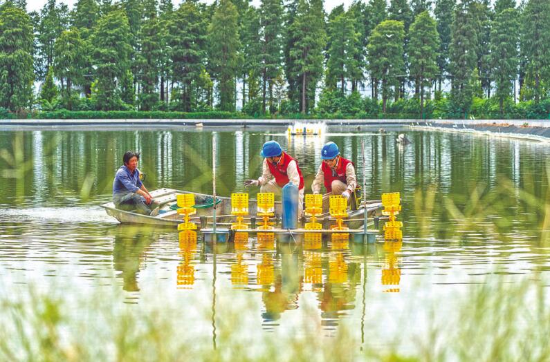 供電員工到高淳國家現(xiàn)代農(nóng)業(yè)產(chǎn)業(yè)園檢查增氧泵運行情況。 杜懿 攝