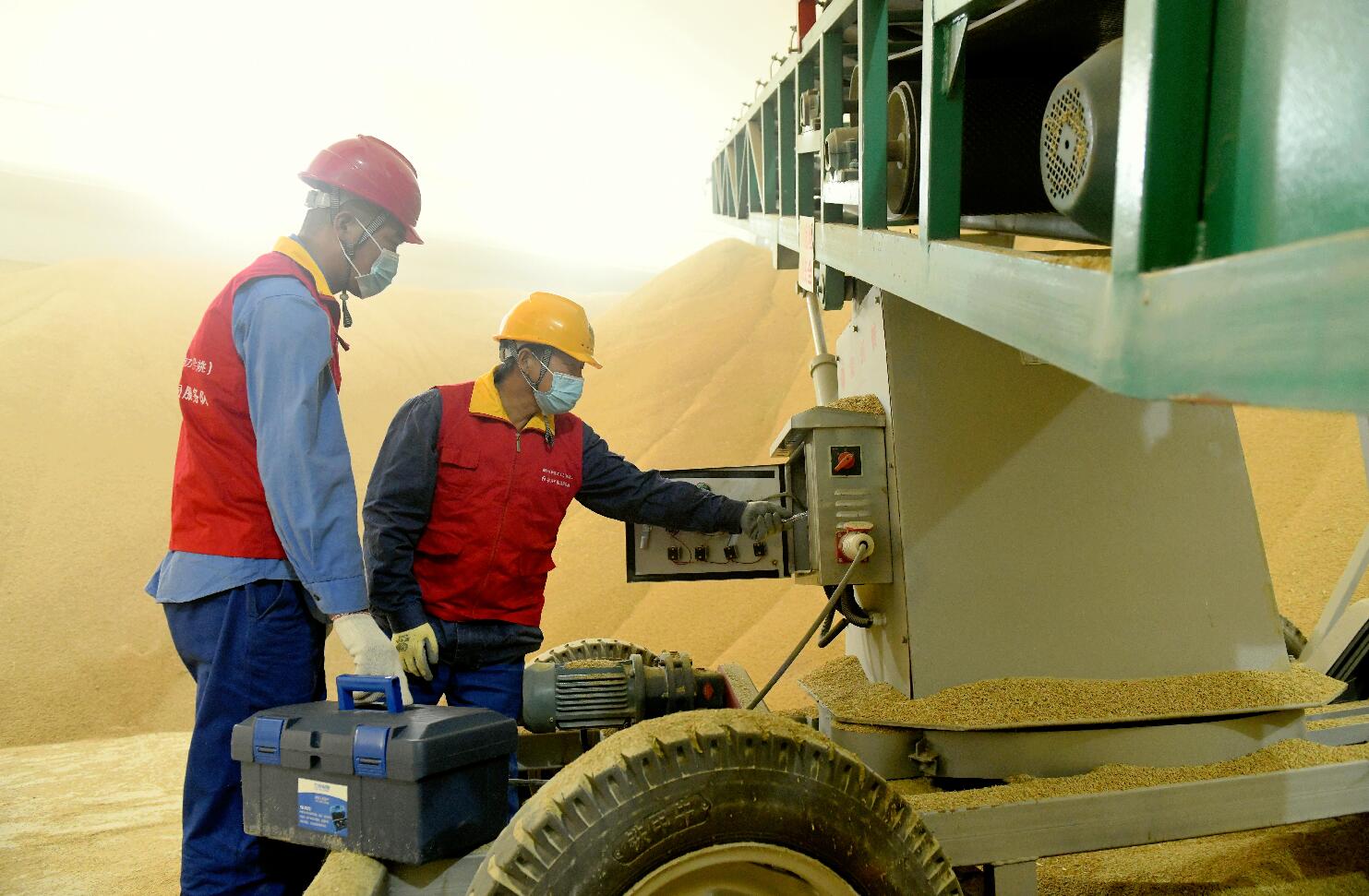 糧食烘干后,下一步就是售入糧倉進(jìn)行儲藏,在余姚市新型機(jī)械化智能化糧庫——第三中心糧庫,國家電網(wǎng)浙江電力(余姚)紅船共產(chǎn)黨員服務(wù)隊隊員劉益軍、李財寶正仔細(xì)檢查配電線路、變壓器等供電設(shè)備,同時對糧庫內(nèi)安全工器具是否完備、移動式轉(zhuǎn)向型傳送機(jī)等大型設(shè)備供電線路是否存在隱患,插排轉(zhuǎn)換器等是否安全等情況進(jìn)行了嚴(yán)格檢查。“糧庫內(nèi)的電力設(shè)備和線路運(yùn)行良好,一來不要超載運(yùn)行,二來注意用電設(shè)備周邊清潔就可以啦。”服務(wù)隊員劉益軍叮囑道。