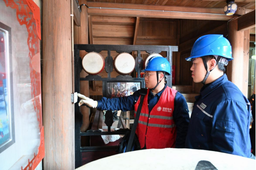 國網(wǎng)邵武市供電公司員工在和平戲院檢查用電設(shè)備安全。(朱麗)