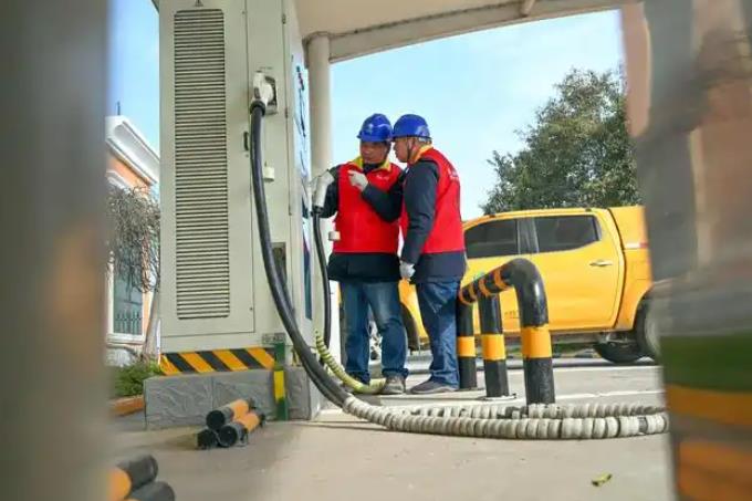 為保障春運和春節(jié)期間電動汽車出行可靠充電,該公司提前對擔(dān)負(fù)電動汽車充電站的10千伏線路、配電臺區(qū)進行巡視,利用晚間用電高峰時段開展設(shè)備特巡和紅外測溫,及時發(fā)現(xiàn)消除設(shè)備缺陷隱患,確保設(shè)備安全運行和可靠供電。組織人員對全縣29家充電站進行走訪,了解日常充電負(fù)荷和近期負(fù)荷情況,征求供電服務(wù)、故障應(yīng)急搶修方面意見建議,幫助排查消除供用電設(shè)備缺陷隱患,確保充電站安全可靠用電。對境內(nèi)高速服務(wù)區(qū)、國道主干道兩側(cè)人流車輛密集、充電頻率較高的充電站,安排13支服務(wù)隊做好服務(wù)對接和日常巡視,及時快速解決存在的用電問題,確??煽抗╇姾蛙囕v正常充電。