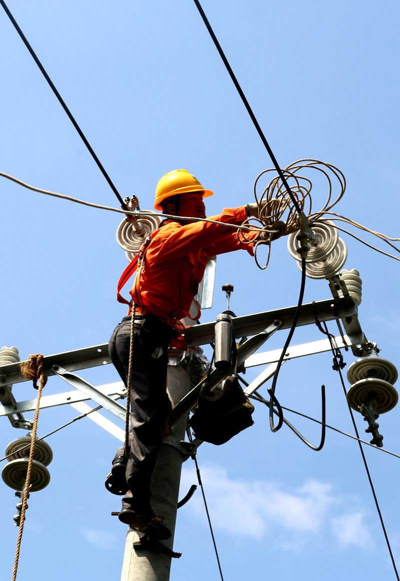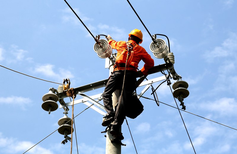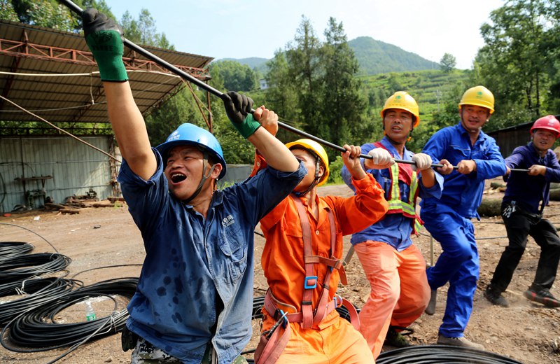 中國(guó)電力網(wǎng)訊 2020年7月9日,高溫天氣下,國(guó)網(wǎng)四川省巴中市通江縣供電公司施工人員在10千伏涪草線七水村支線防山火整治施工現(xiàn)場(chǎng),進(jìn)行放緊線作業(yè)。程聰攝